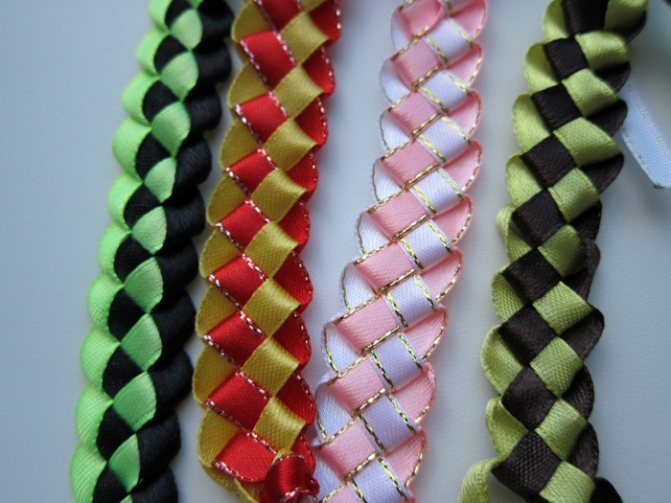 - одно- или двухсторонней лентой из атласа, крепдешина, хлопка,