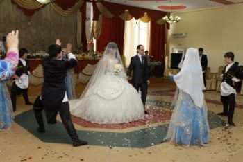 По желанию брачующихся и их родственников, свадьба может быть скромной, по мусульманским обычаям, без спиртного и с раздельными столами для мужчин и женщин. Или же привычная нам, шумная, с весельем, танцами, музыкой и обильным застольем. Празднуют обычно либо в банкетных залах ресторанов, либо во дворах домов. Основное требование к месту проведения застолья – оно должно вместить всех желающих.