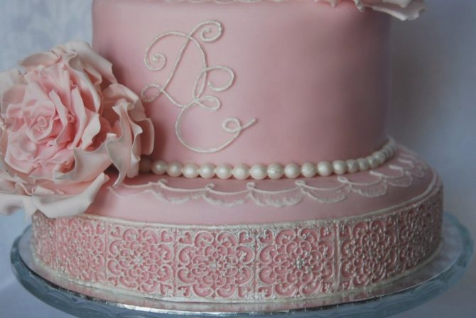 Профессионалы кондитерского искусства современности предоставляют огромный выбор вкуснейших тортиков с вкусной и красивой начинкой, разной расцветки и необычной формы. Сегодня в качестве красивого украшения торжественного десерта применяют банты, бусинки, кружевной орнамент, цветки. Розовый торт шикарно выглядит на торжественном застолье. Мастера используют для декора марципановую пластичную массу, создающуюся из сахарной пудры с молотым миндалем.