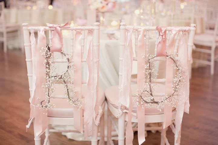 Классический вариант оформления на свадьбе – розовый с белым. Получается универсальный нежный тандем, который не будет привлекать излишнего внимания, но при этом запомнится всем присутствующим. В качестве декора в большинстве случаев используют ткани и живые цветы, а творческие люди могут сделать бутоны-гиганты из бумаги.