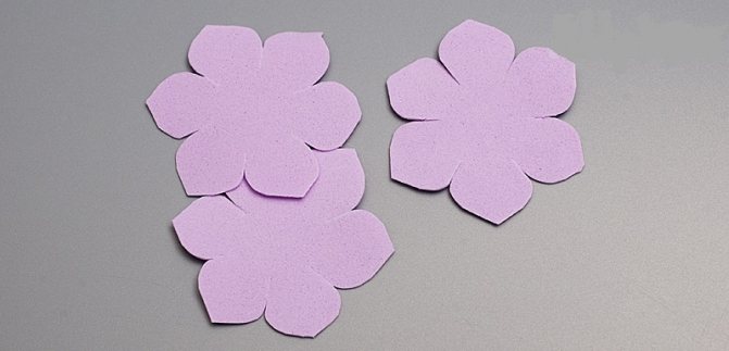 - Также рядом с бантом нужно будет разместить еще один большой цветок, который делается из таких заготовок, которые мы делали для листочков. Эти заготовки сшиваются между собой. Серединка делается из бусинки: