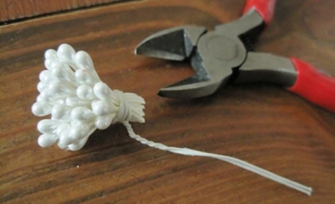 - Тычинки не должны иметь слишком длинные хвостики, их нужно обрезать так, чтобы получилась вот такая заготовка для букета: