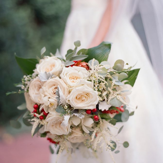 Не стоит переживать на тот счет, что зимой не получится сделать нежный букет. Вспомните о том, что есть искусственные цветы, что есть также такой стиль, как рустик, в котором можно объединять любые растения в свадебный букет. Вот вам для примера такие варианты: