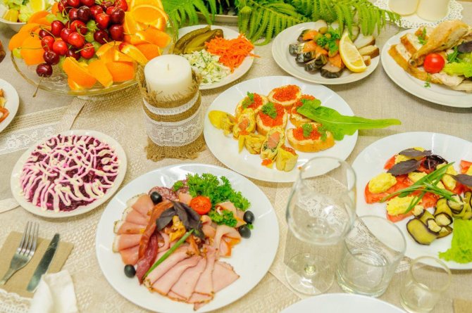 На праздничном столе должны стоять угощения, приготовленные исключительно из натуральных продуктов. Как нельзя лучше подойдет веганское меню. Но и о мясоедах стоит подумать. Следовательно, необходимо учитывать вкусы и предпочтения всех гостей, дабы не поставить себя в неловкое положение. С мясными и рыбными продуктами идеально сочетаются овощи и зелень в большом количестве.