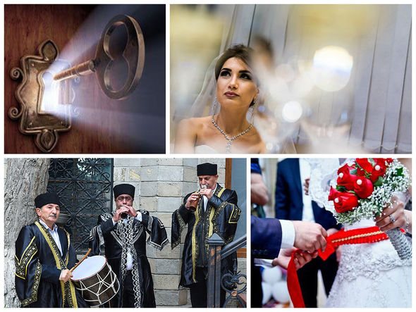 Под азербайджанскую национальную музыку жених со свитой гостей приезжает в дом невесты, и под музыку «Вагзалы» девушка покидает отчий дом.