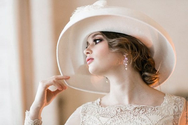 Вариант со шляпкой лучше всего подойдет для тематической свадьбы (например, в стиле ретро), для пляжной церемонии или для повторного бракосочетания — в этом случае многие невесты и их родственники считают фату не слишком уместной, особенно, если невесте уже не 20 лет.