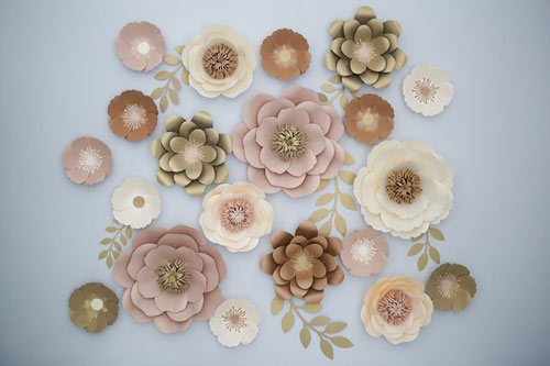 Трендом последних сезонов считается использование бумажных цветов на свадьбе. Из дизайнерских и гофрированных листов получаются привлекательные бутоны, которые не стыдно использовать для оформления торжества. Если соблюсти цветовую гамму и создать интересную композицию, то получится стильный фон для фотографий.
