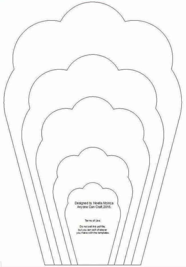 Я привела пример небольших размеров, чем больше вам нужен цветок, тем на большую цифру умножайте каждое из этих значений. Главное, чтобы бумаги хватило)))