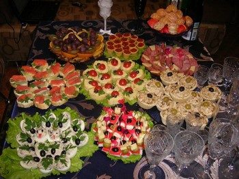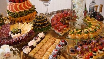 - Сама еда сводится, как правило, к закускам, легким салатам и десертам. Отсутствуют дорогостоящие горячие блюда, что позволит существенно сэкономить.