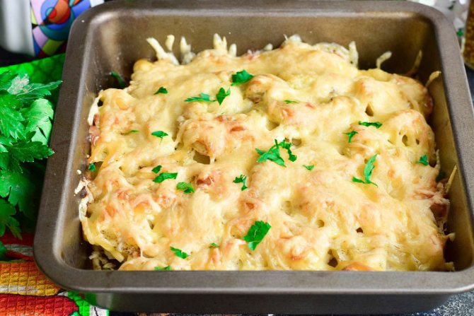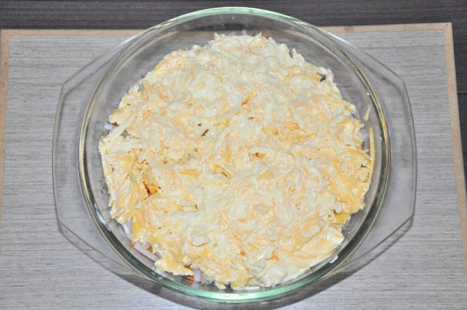 4. Сверху обильно нанести сыр и отправить в разогретую духовку на полчаса.
