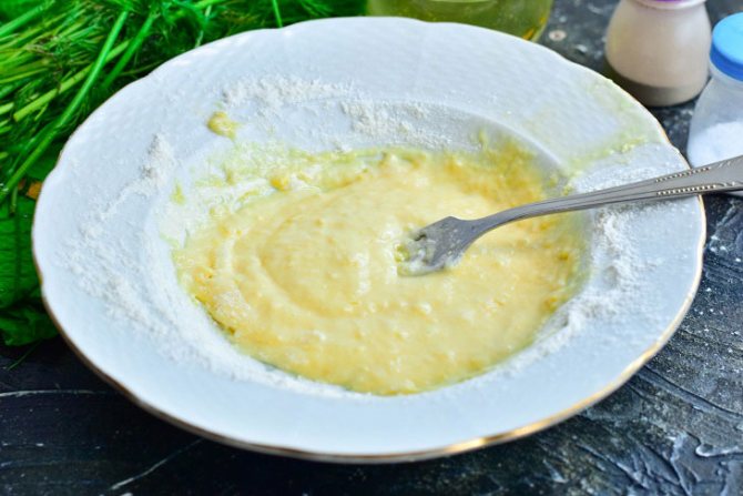 1. К разбитому яйцу добавить необходимое количество муки и сметану. После – перемешать.