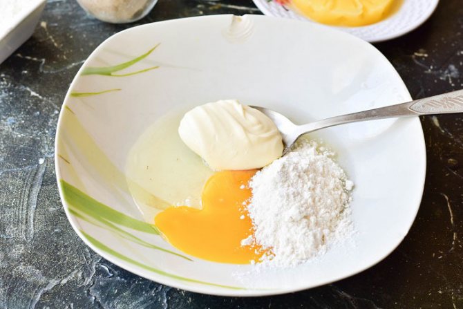 1. Для начала необходимо соединить одно яйцо, потертый сыр и сметану