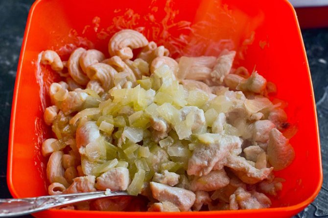 2. Луковицу также нужно нашинковать и обжарить вместе с грибами до готовности.