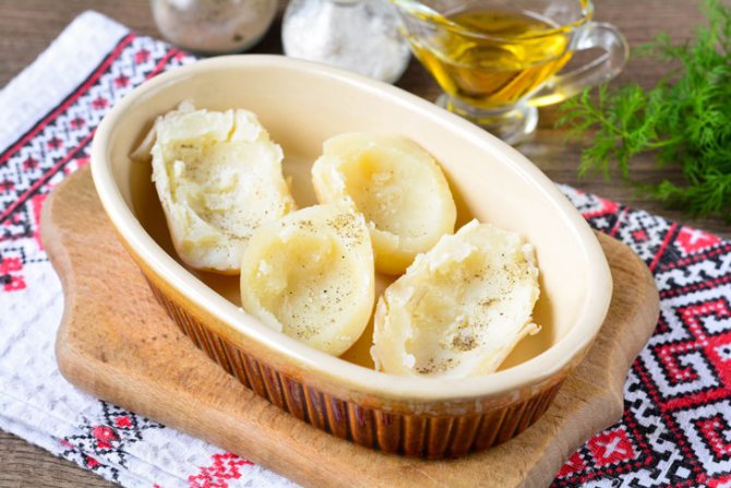 3. Картофель отварить способом в мундире, при этом не позволяйте клубням перевариться, иначе трудно будет придать форму лодочки. Не забудьте, что картошку нужно очистить от кожуры и лишь потом удалить сердцевину чайной ложечкой.