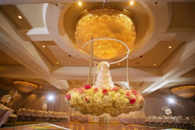 В настоящее время трендом является торжественное появление торта при помощи специальных устройств, опускающих чудо кондитерского искусства сверху. Это может быть подобие качелей, украшенных цветами и шелковыми лентами. Как правило, такое шоу производит незабываемое впечатление на всех присутствующих.