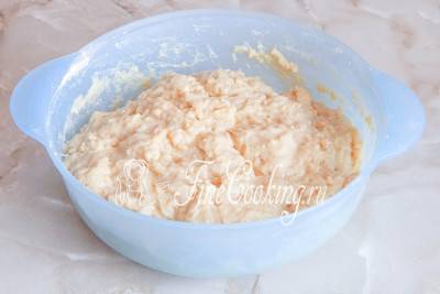 После перемешивания у вас получится вот такое очень липкое, жидковатое и неоднородное тесто, которое и тестом назвать сложно