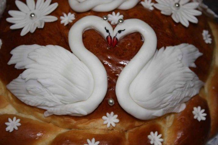 Украшения свадебного пирога тоже традиционны. Колоски символизируют богатство, голуби – любовь, лебеди – верность, косички – плодородие. Да и сама круглая форма каравая – символ солнца.