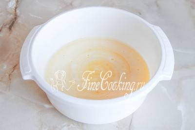 Получилась вот такая молочно-масляная жидкая смесь. Остудим ее до приятного теплого состояния, то есть градусов до 37.