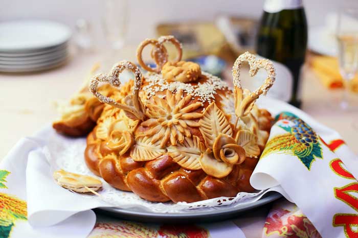 Каравай на свадьбе – обязательный атрибут праздника. Все чаще его заказывают в кондитерских и пекарнях. Но, приготовить такую выпечку можно самостоятельно, если воспользоваться проверенными рецептами и секретами украшений.