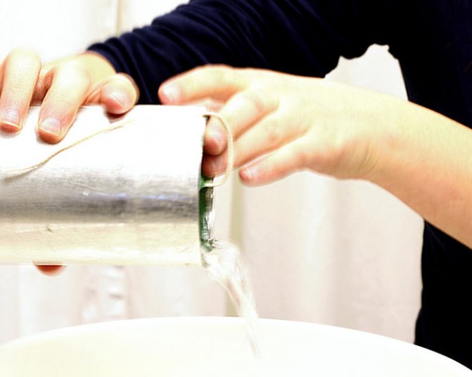 Аккуратно слейте воду и извлеките изделие, потянув за фитиль.