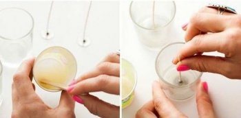 Чтобы впоследствии было легко вынимать свечу, стенки формочки следует промазать растительным маслом. Иногда для этих целей используют средство для мытья посуды. Далее нужно следовать инструкции, как делать свечи в домашних условиях: