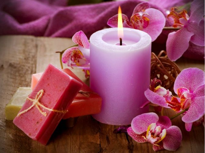 В процессе изготовления новой свечи используйте эфирные масла. В жидкий (растопленный) воск перед заливкой в форму добавьте немного любимого ароматического масла.