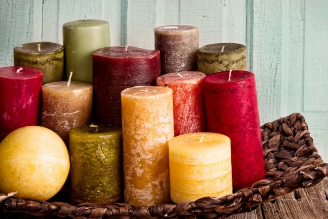 Также красители покрывают свечу жирным слоем. Если вас это не пугает, то добавляйте их во время плавления. А вот если вы хотите получить неравномерный цвет и придать колорита, то добавьте краситель в воск перед заливкой.