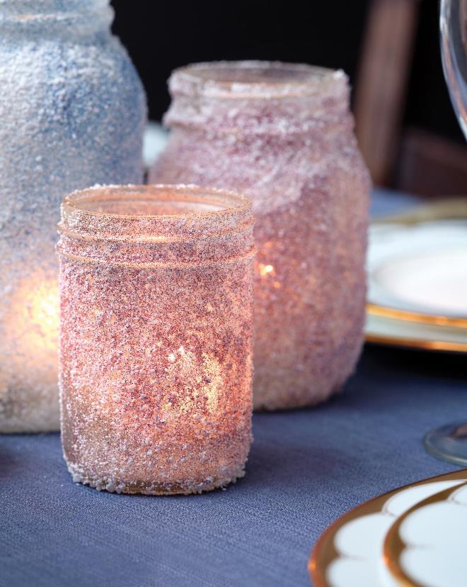 Несколько неожиданный декор в виде соли придаст изделию оригинальный нежный вид, особенно если поверхность из парафина/воска предварительно разукрасить. Пошаговый процесс: