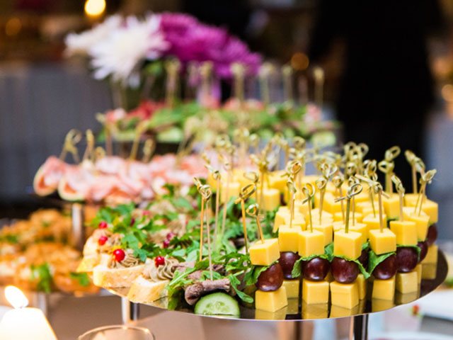 Одно из главных правил любой свадьбы и торжества – сделать так, чтобы все гости были сыты и довольны. Баланс «хлеба» и «зрелищ» является актуальным для свадебных банкетов. Правильно составленное меню ‒ залог успеха. Именно поэтому важно заранее продумать рецепты закусок, бутербродов и канапе для свадебного стола, прогулки. Очень часто после торжественной регистрации брака около ЗАГСа организуют выездные фуршеты, на которых основными блюдами являются холодные закуски, бутерброды, фруктовые шпажки и т. д. Мы предлагаем простые и вкусные рецепты, которые придутся по вкусу даже самым привередливым гостям.
