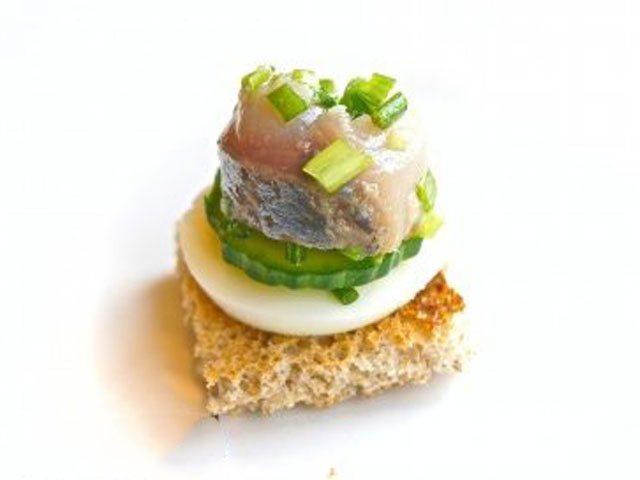 Ломтик вареного яйца скрашивает солоноватый привкус рыбы и получается очень даже аппетитно и сытно.