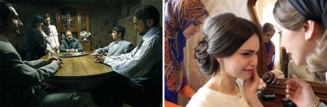Вступление в брак в Чечне возможно исключительно с разрешения родителей с обеих сторон, иного свадебные традиции попросту не предусматривают. Перед сватовством представители жениха самым тщательным образом изучают биографию его возлюбленной, а также биографию всех членов ее семьи как минимум в трех-четырех поколениях: это важно, чтобы полностью исключить вероятность кровосмешения.