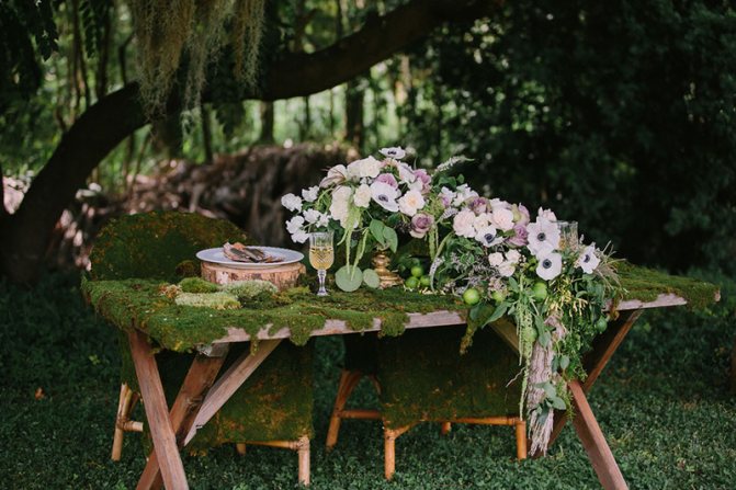 Бонбоньерки можно преподнести в виде домашних заготовок с эксклюзивной эмблемой, упакованных в мешковину. Хороший вариант – мед, который прямо при вас достанут из печи. Каменные статуэтки, композиции, светильники, обвитые лианами; лоза, шкуры и рога животных могут дополнить пространство. Сделать свадьбу романтичной или максимально приближенной к естественным, диким условиям лесной чащи, – выбор молодоженов, организаторов. В любом случае природа предоставляет человеку неограниченное пространство для самовыражения.