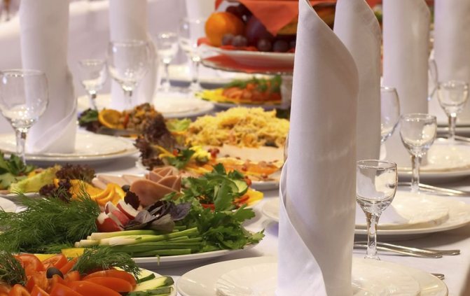 - Российская организация – все без исключения «в стол». Подойдет для крупных корпоративных вечеринок и праздников с огромным скоплением людей и огромным числом блюд и закусок.