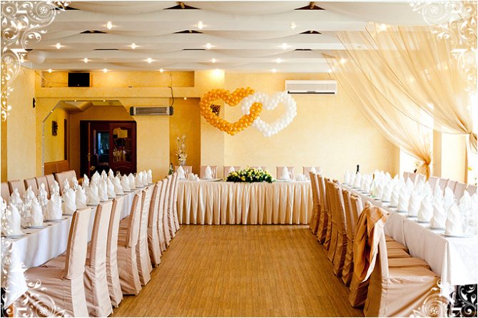 Небольшое количество гостей – до 20 человек можно поместить и дома. Для организации праздничного застолья на более 20 приглашенных, лучшим вариантом будет снять помещение под банкет. Залы для банкетных столов можно арендовать почти в любом ресторане или кафе. Для выбора такого помещения необходимо учитывать такие требования как: 1. Удобство зала для торжества (наличие кондиционеров, просторное помещение). 2. Вместимость (зал должен вмещать необходимое количество гостей). 3. Месторасположение (следует брать во внимание то, что приглашенным должно быть удобно добираться до заведения). 4. Интерьер помещения (с учетом пожеланий и предпочтений). 5. Наличие танцплощадки, зон отдыха. 6. Качественный сервис. 7. Ассортимент меню. 8. Приемлемые цены. 9. Для проведения мероприятия на свежем воздухе – наличие тентов и зонтов. 10. Наличие места для аперитива.