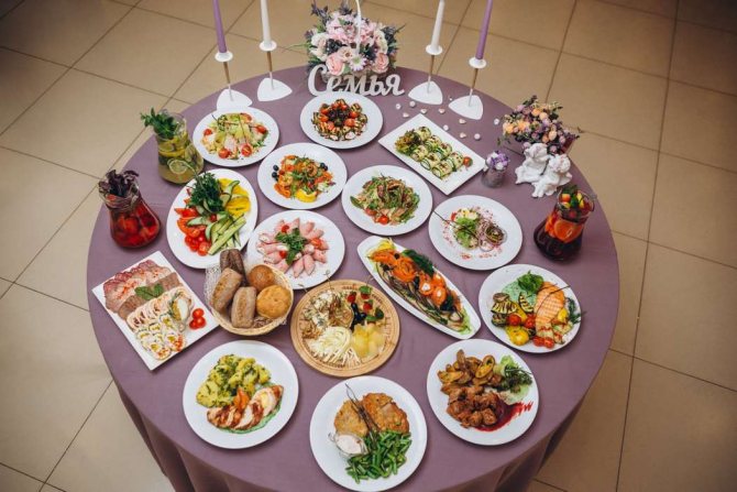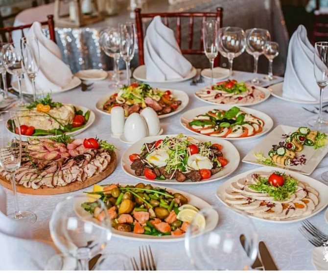 - Салаты и десерты обязательный элемент, с ними легко продемонстрировать изобилие угощений;