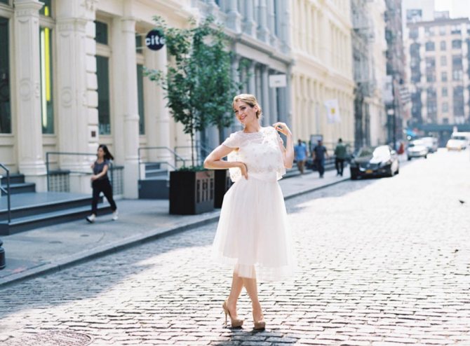 Также можно просто выбрать укороченную модель свадебного платья или приобрести отдельное недлинное платье, предназначенное для гуляний.