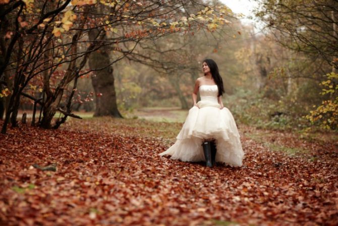 Укороченный наряд сделает оригинальные резиновые сапоги заметными и значительно разнообразит фотосъёмки.
