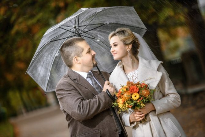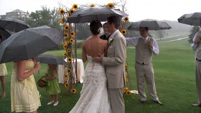Стоит с самого начала уточнить, что если прогноз погоды показывает активные осадки на день регистрации брака, то вовсе не обязательно, что реальность окажется таковой. Во всяком случае, рисковать не стоит, а вот подготовиться заранее однозначно необходимо.