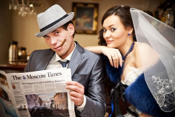 Если свадьба будет проходить в конкретном стиле, то шляпу можно подобрать в тематическом варианте. При этом необязательно покупать готовый реквизит – для шуточного конкурса можно сделать все собственными руками. Если же такой вариант не рассматривается, то можно на время одолжить подходящую шляпу у знакомых.