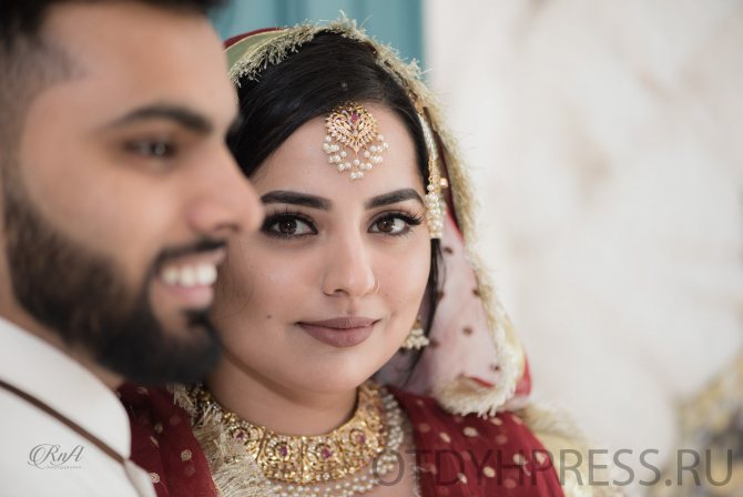 Обязательным для всех мусульман является обряд бракосочетания – никах. Проводится он в мечети мулла или илам. Невеста всегда одета в длинное закрытое платье, украшенное всевозможными узорами. На голове – многослойная фата или праздничный хиджаб. У мусульман не принято дарить золото, поэтому кольца у молодоженов обычно серебряные.