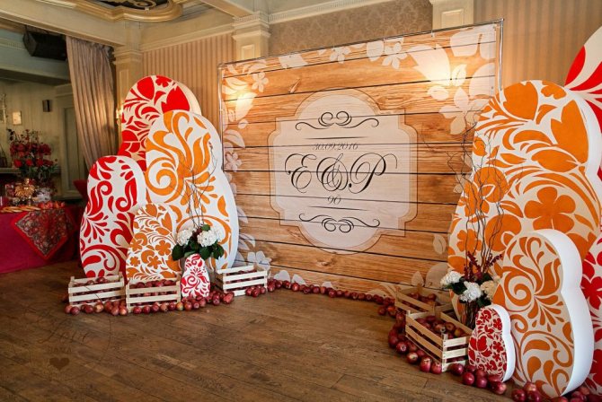Залы, украшенные в русском стиле, похожи на загородное поместье, или лесной охотничий домик. Декор таких залов не прост, хоть и кажется на первый взгляд достаточно легким.
