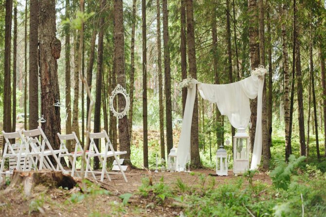 Такую свадьбу лучше всего проводить на природе, можно даже в лесу