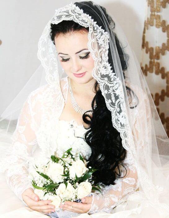 Чеченская невеста стоит опустив голову в углу комнаты.