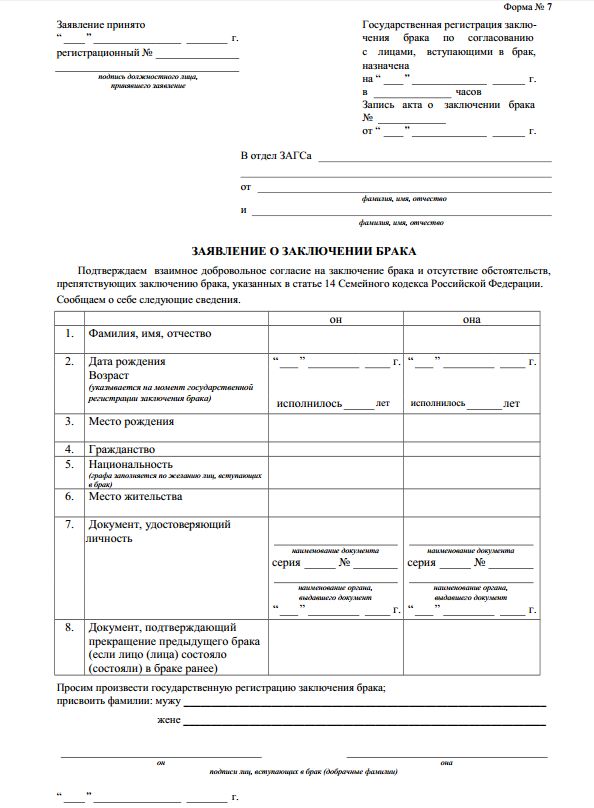 Заявление о регистрации брака