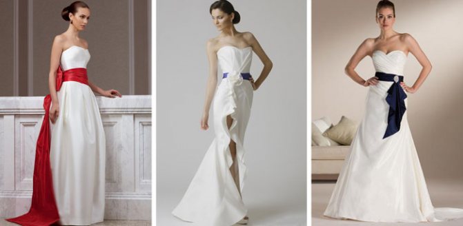 Самое главное — подобрать пояс под цвет платья. Если данные элементы не будут сочетаться, образ окажется провальным. К традиционному белому платью подбирают пояс: