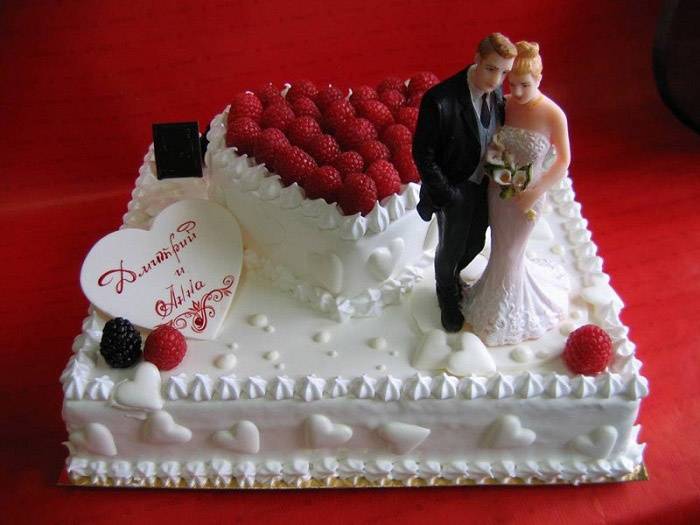 - Если торт многоярусный, то иногда верхнюю часть массой около 0,5 кг оставляют для молодоженов, чтобы они могли полакомиться сладким в спокойной обстановке после банкета. В этом случае рассчитывается вес оставшихся ярусов.