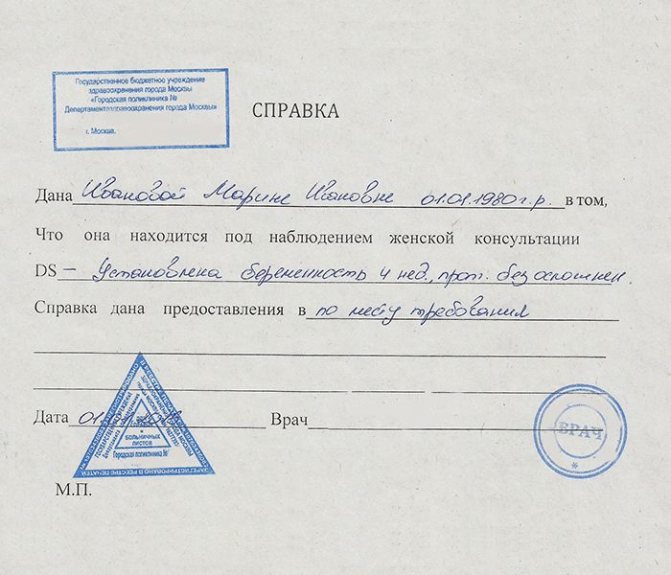 Справка о беременности выдается в день обращения и содержит в себе такие данные: