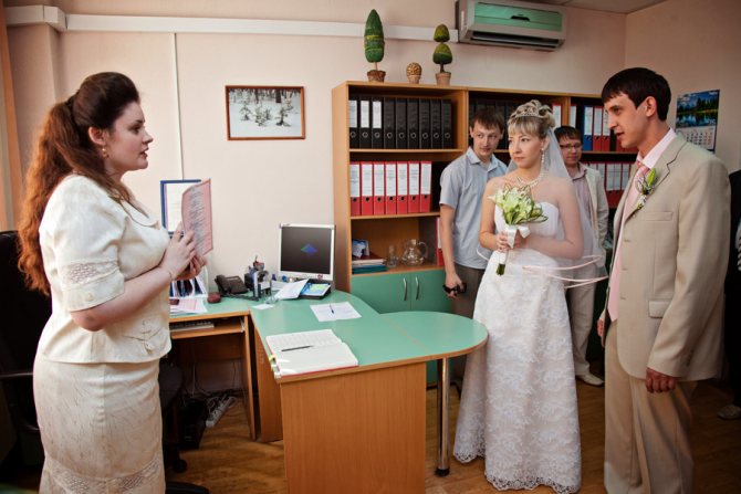 При обычной регистрации молодых приглашают в отдельный кабинет, и вся процедура заключается в подписях и штампе. При желании можно пригласить своего фотографа.