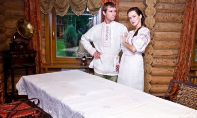 - Рушник. Это вышитый кусок ткани в виде длинного полотенца. Он являлся защитой семьи и рода, его передавали от одного поколения к другому. Рушник использовался для поднесения каравая или другого угощения. Нельзя было наступать на рушник, так, семья лишалась защиты духов, обрекла себя и потомков на несчастья.