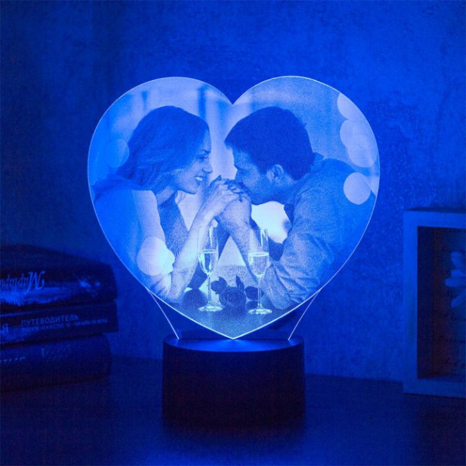 3D-светильник в форме хрустального сердца. Закажите индивидуальную надпись для родителей на прозрачном корпусе светильника. При включенной лампе надпись будет мягко светиться в темноте.